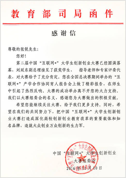 2018年,多多28连续多年为中国国际互联网+大学生创新创业大赛做出积极贡献,获教育部来函致谢。